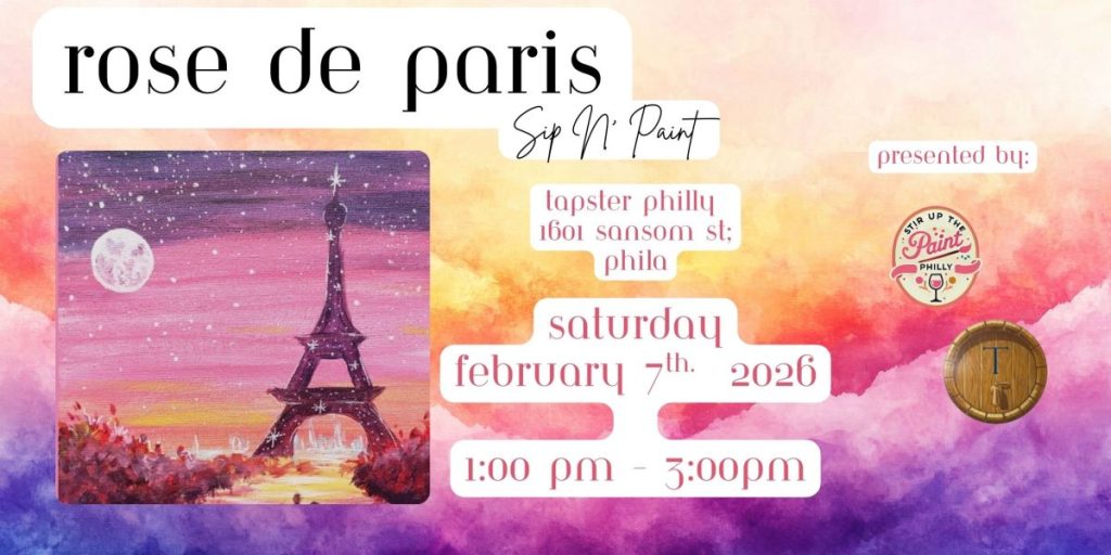 We’ll be hosted by Tapster Philly, a self-serve tasting room where you can sample a variety of beers, wines, ciders, and cocktails before pouring your favorites. It’s a unique and interactive way to sip while you paint!
