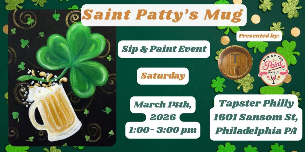 We’ll be painting at Tapster Philly, home of a self-serve tap wall—one of Philly’s newest beverage concepts. Guests can sample a variety of drinks before pouring their favorites at their own pace.