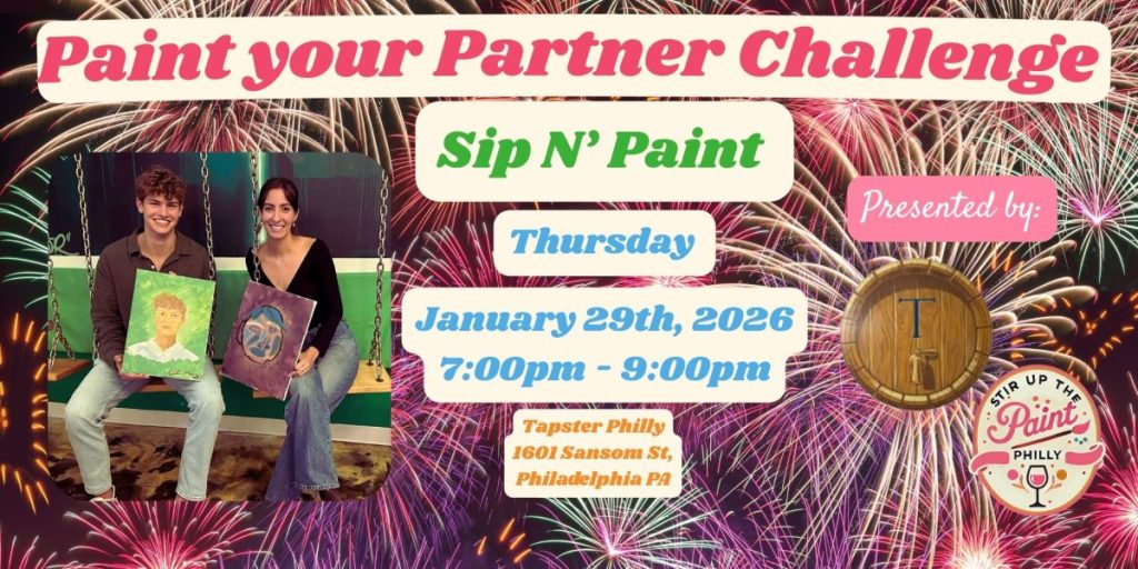 We’ll be painting at Tapster Philly, home of a self-serve tap wall—one of Philly’s newest beverage concepts. Guests can sample a variety of drinks before pouring their favorites at their own pace.